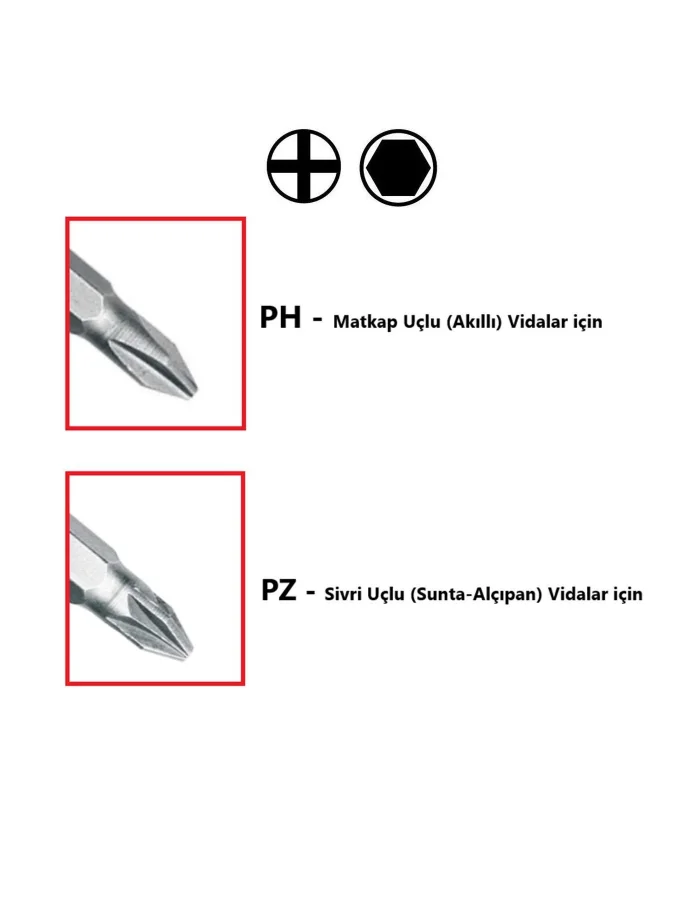 Sunta Vidası için Matkap Ucu Mıknatıslı Bits Uç Vidalama Aparatı Yıldız Uç PZ2x50mm