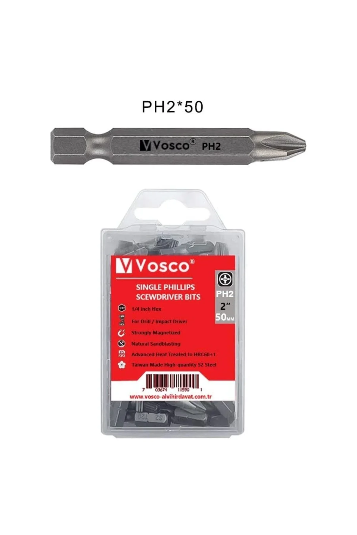 Vandor Standart PH2x50 Vidalama Ucu Bits Uç Kutu 10 Adet